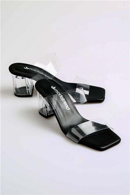 Women's Clear Heel Slippers - Black #369581