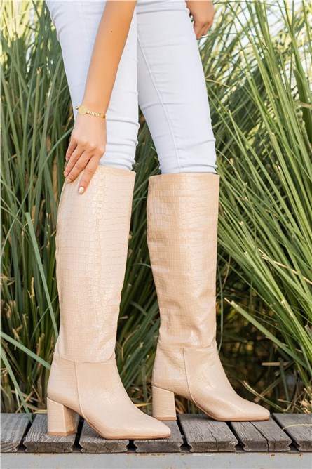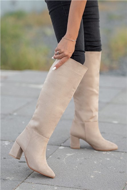 Women's Suede Heeled Boots - Light Beige #361528